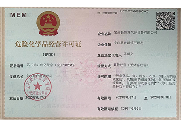 經(jīng)營(yíng)許可范圍:一般危化品 (充裝):氬[壓縮的或液化的]、氧[壓縮的或液化的]、氮[壓縮的或液化的]、二氧化碳[壓縮的或液化的]一般危化品:丙烷、乙炔、氦[壓縮的或液化的]、